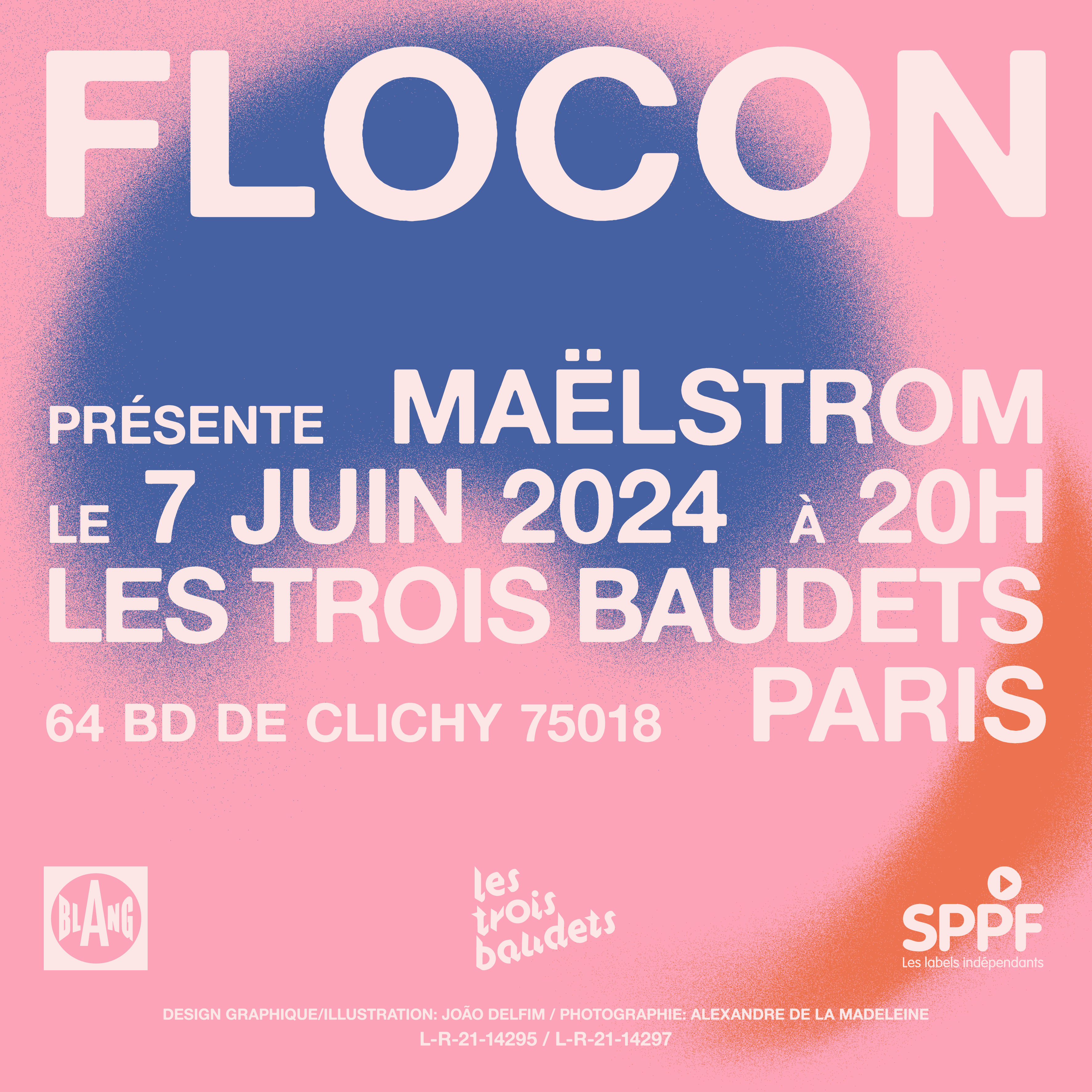 Graphic design commission for indie pop emerging French band Flocon’s debut concert Maëlstrom at Les Trois Baudets, in Paris. Social media visual and poster.